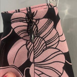Chic mini skirt with bold pink floral design. Stylish and versatile for any occasion. Size 14P, 43 cm across the waist, 54 cm length
