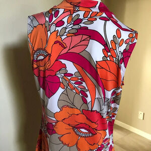 Worthington Sleeveless Cowl Neck Floral Poly BlendTop Pink Orange Wht Tan Size S