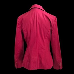 Chic red blazer with button closure. Tailored fit. Ideal for professional settings. Length 25" Bust 34" Sleeves 23"