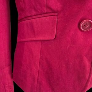 Chic red blazer with button closure. Tailored fit. Ideal for professional settings. Length 25" Bust 34" Sleeves 23"