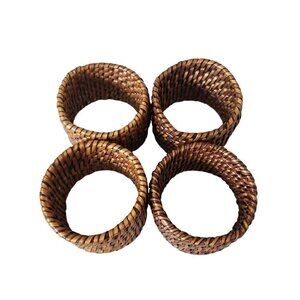 Woven Rattan Round Napkin Rings Set of 4 1.5" wide Excellent condition