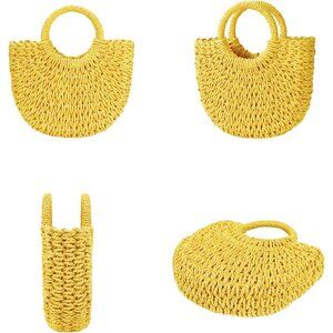 Woven Straw Beach Bag for Womem Top Handle Yellow Crossbody and Shoulder Strap