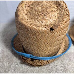 Woven Straw Fedora Hats With Decorative Bands & Accents Set Of 2