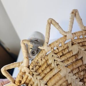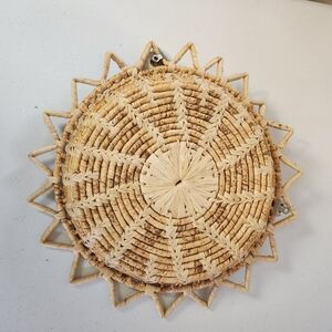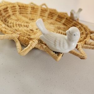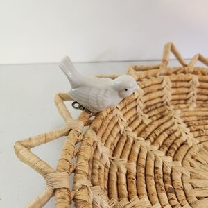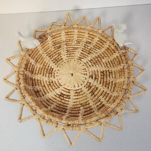 Woven Wicker Boho Sun Basket Ceramic Clip On Birds Bohemian Home Decor Vintage