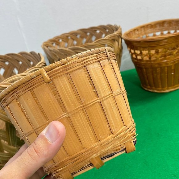 Woven Wicker Planter Basket set of 4, Vintage Bamboo Baskets, Vintage Wicker Bas