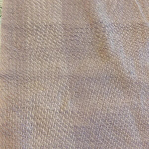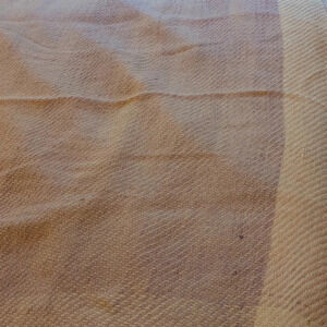 Single bed Blanket, most likely 1940's. My mother remembers it from her childhood. Appears hand woven, does not have tags. Colours are a soft grey/purpose with stripes of cream. It is in Very Good used Condition, especially considering its age. There are some tight and loose spots in the weave and some pull spots at the bottom where its been tucked under the mattress.