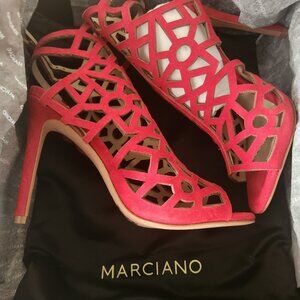 The beautiful artistic design in these red Marciano heels is surely to turn heads.