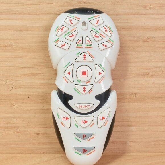 Authentic WowWee Robosapien white remote control, perfect as a replacement controller for your robot. The remote was fully tested, all functions work properly, and IR transmission is strong.