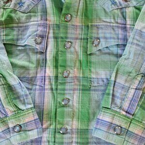 Vintage Wrangler 100% cotton western style plaid shirt.