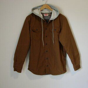 Wrangler Hooded Shirt Jacket Flannel Lined Hoodie Spice Brown Size Medium