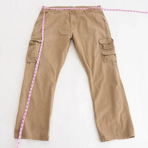Featuring a classic tan color and functional cargo pockets, these pants offer both style and utility. The sturdy fabric ensures durability, while the size 40 waist and 32 inseam provide a comfortable fit for all-day wear.