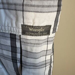 Wrangler Men's 42 Lightweight Plaid Cargo Walking Shorts White/Gray Outdoor