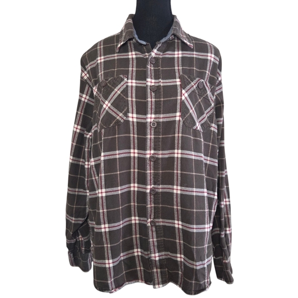 Wrangler Men's Dark Brown Plaid Button Down Flannel Shirt Size L