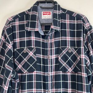 Men’s black, red and white Wrangler Plaid Flannel Shirt.