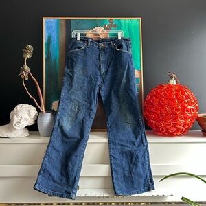 Classic straight fit. Durable denim. Timeless style. Vintage. Tag says 35" x 34" see measurements for exact fit. Rugged Rustic Great vintage condition see pics perfectly faded. Some stains paint adds to the charm. Rugged Rustic Great vintage condition see pics. One of one