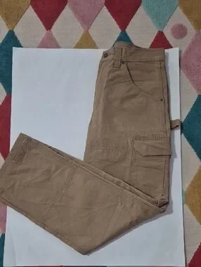 Includes reinforced knees with a bottom vent to accommodate knee pads and a patented leather tape measure reinforcement on the front pocket.