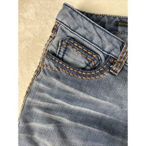 Wrangler Rock 47 Ultra Low Rise Jeans Women’s 11 X 34 Thick Stitch Flare pocket Flap