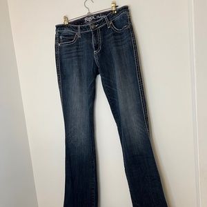 Wrangler Rock 47Jeans Women’s 29x34 Embroidered Stitched Low Rise Flare Boot Cut