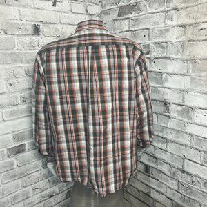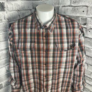 Wrangler Shirt Orange Grey Plaid Outdoor Button Down Long Sleeve