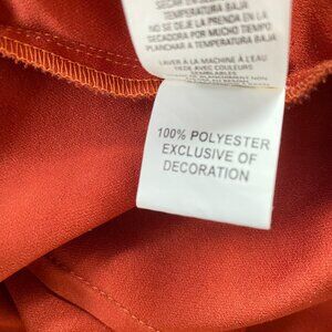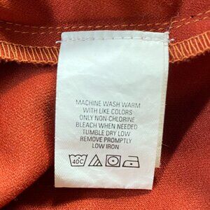 SZ Med, Wrangler Soft Faux Suede Terracotta Western Snap Shirt Blouse. Contrast stitching detail, metal decorative snaps, dual chest pockets with snap flaps, long sleeve with snap cuffs, burnt orange or terracotta colour. Measurements: PtoP: 20" / Sleeve L: 23" / shirt L: 23". IN Great preowned condition, no flaws, clean. From a smoke free/pet free home.