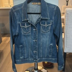Wrangler Western Denim Embroidered Pockets Jean Denim Jacket Women Size M