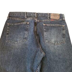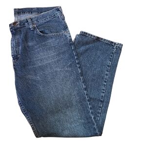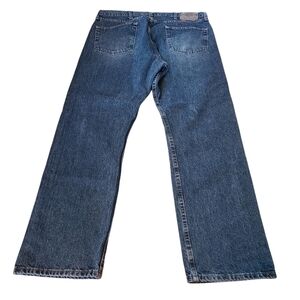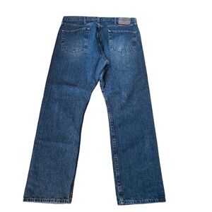 Wrangler, mens blue, wide leg, bootcut, denim jeans. Zip-up front with buttoned waist band, two pockets in the front as well as a watch pocket, two pockets in the back. Super comfortable, in great condition size 36x30