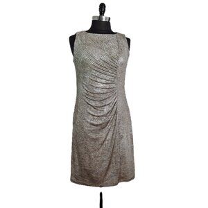 Jessica Ombre Side Ruched Cocktail Sheath Bodycon Lux Silver Gold Dress Boatneck Sleeveless