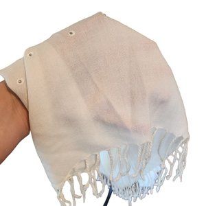Wrap Scarf White Embroidered Floral on White Fringe 84" x 40" Wide
