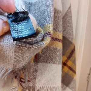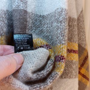 NWOT Warm Knit Winter Shawl Wrap Scarf Cream Tan Yellow Wine Plaid Women's One Size