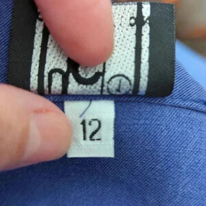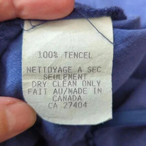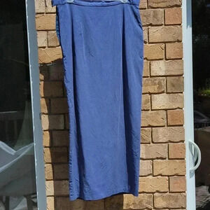 Lovely swishy skirt, Lyocell is such nice fabric, it drapes beautifully. The wrap crosses just above the knee while you walk. Darts front and back for shaping, side zip and button closure. Contrary to the care label it can be washed in cold/warm water and hung to dry or dried on a low temp.