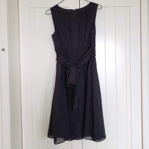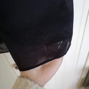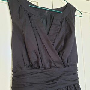 LBD with faux wrap style front and a belt to tie at the back. Modest and flattering. Good for a semi-formal event. Some slight discoloration under the arms and a slight rip on the bottom hem (pictured).