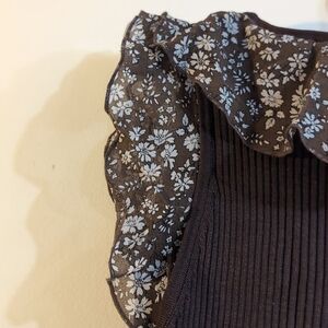 Wrap effect body fit silk blend Mocha brown top stretchy with silk raffl…