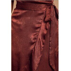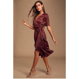 Wrapped Up In Love Burgundy Satin Faux-Wrap Midi Dress - NWT - Size Small