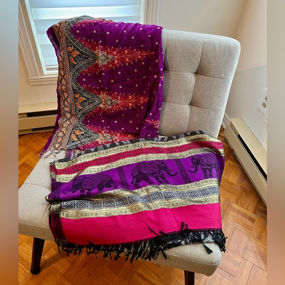 2 wraps, ideal for the beach or to add a touch of colour to an outfit. Could be used as a pareo.