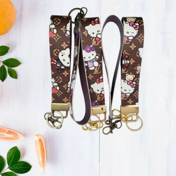 This stylish hand crafted wristlet is the perfect accessory for any occasion. Crafted with faux leather and lined for extra durability, this wristlet features a gold/silver/Bronze keychain fob for easy carrying. Measuring 1 inch wide and 5.75 inches in length, this wristlet is perfect for carrying your essentials in style.