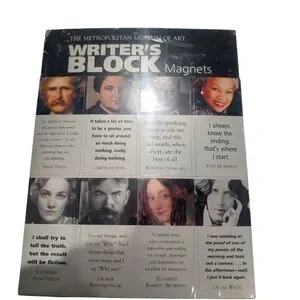 Enhance your space with Writer's Block Magnets. Featuring a classic black and white design, these magnets are perfect for literary enthusiasts.