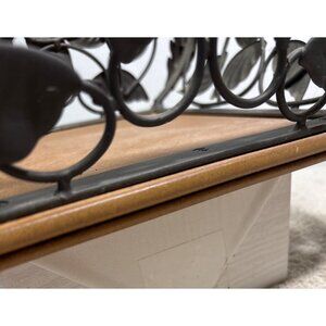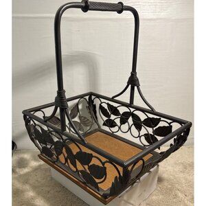 Wrought Iron Leaf Design Basket With Wooden Base 12 3/4 X 9" Heavy