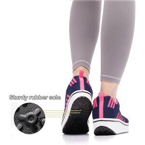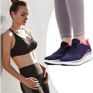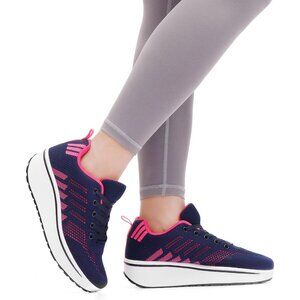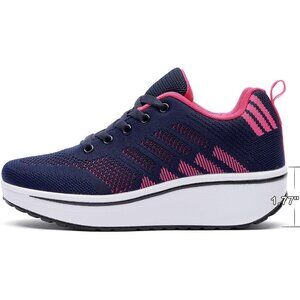 Wuiwuiyu Womens Blue Athletic Sport Wedge Platform Mesh Lace Up Rocker Sneakers