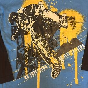 Long sleeve with short sleeve top layered overtop. Games official product. Like new. Skateboard graphic.