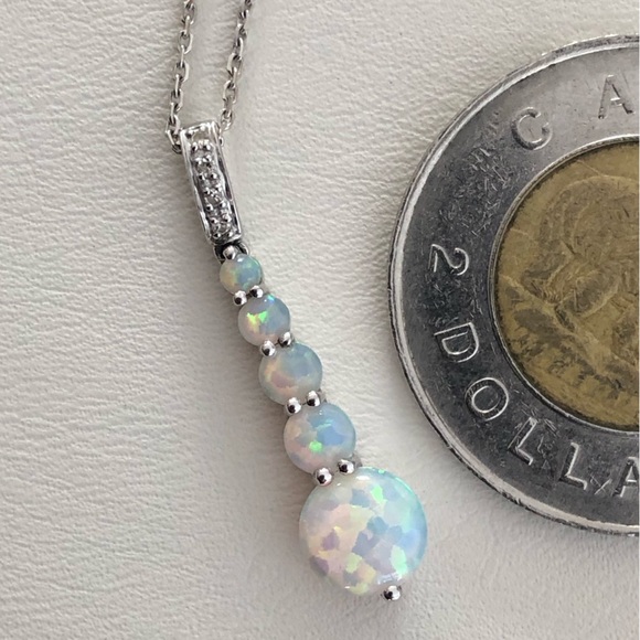 X SOLD X White opales and diamonds in 14k white gold necklace