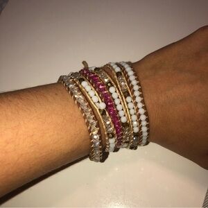 x2 Beaded Crystal Wrap Bracelets with pink brown white and clear Crystal beads. Look great worn together or separately.