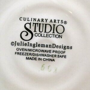 This is a pair of beautiful stoneware dinner plates from Culinary Arts Studio Collection by Julie Ingleham Designs. The plates feature a charming, hand-painted style with floral motifs. Perfect for adding a touch of classic kitchen decor to your dining table.