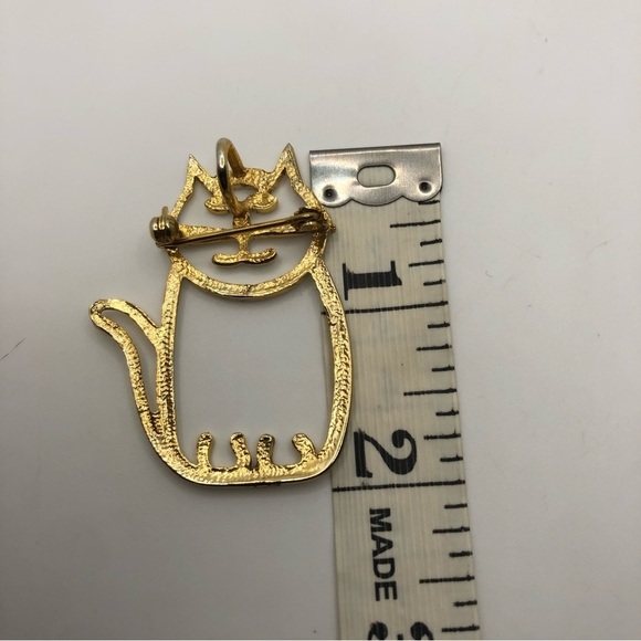 Bundle of 2 gold & silver tone cat brooches , measurements in photos -