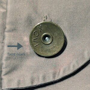 This mainly cotton medium brown jacket features rouched panels down the front, two pockets, two button front closure and buttoned cuffs. The metal buttons are original and marked XCVI.