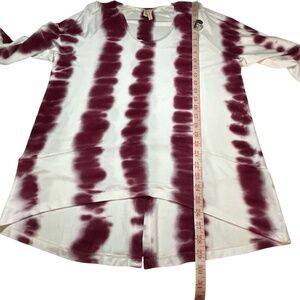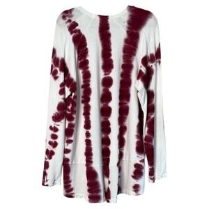 XCVI Long Sleeve Rayon Blend Knit Hi Lo Burgundy Tie Dye Print Top US Sz L