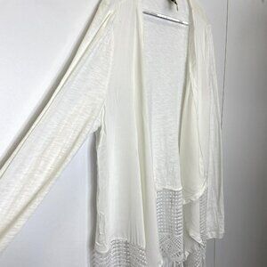 XCVI Open Cardigan Sweater Womens Size Medium White Lightweight Boho Fringe
