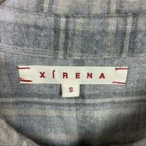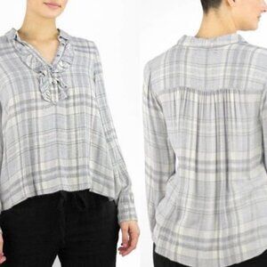 XIRENA Ali Top Dovetail Flannel Ruffle Grey Blouse Size Small Plaid Popover USA