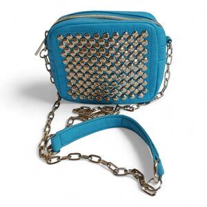 XL Aqua Blue Vegan Studded Crossbody Bag – Square Mini Purse w/ Chain Strap NWOT