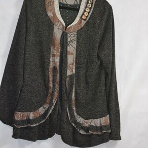This sweater is amazing, with frills, buttons fabric mixed with knit. Boo Radley Australia SZ XL