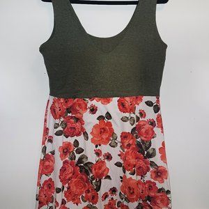 XL Green & Red Flower Dress Handmade by Mam'Zelle & Petit Homme